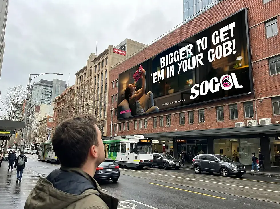 However, if the elongated horizontal billboard is up high and if you’re walking towards it and it’s on a building to that person’s left, then my recommendation is to have the logo on the far left. And if it was on a building to their right, then have the logo on the far right of the billboard. In this instance, it’s not quite a hard and fast rule as people may of course be walking in both directions on that one side of the road, but for cars driving past, it’s more advantageous based on this example being in a region where people drive on the left side of the road, like Australia.